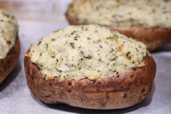 - Divide among 4 potato skin halves, piling generously high, but don’t pack too tightly.